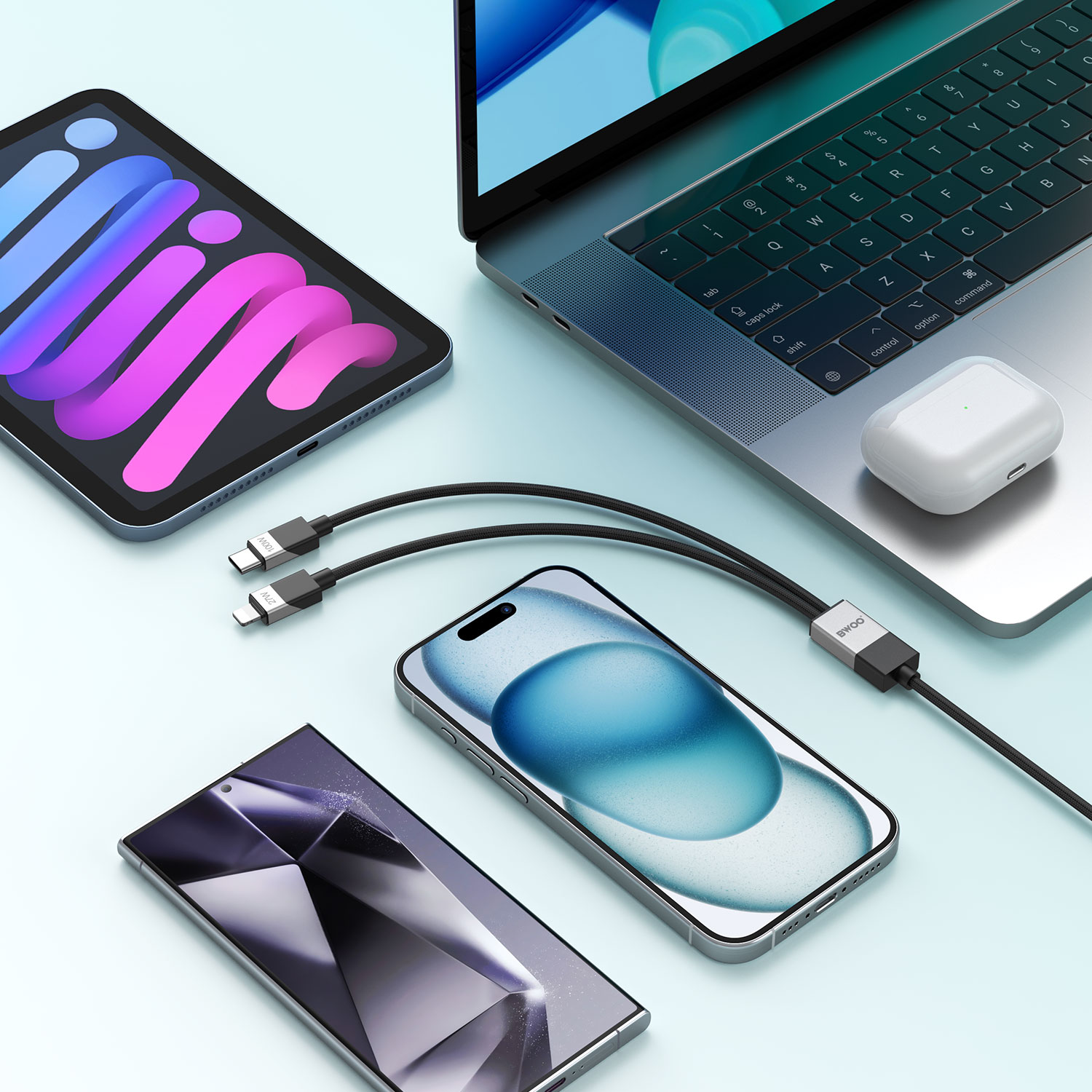 Cable USB-C a Lightning y USB-C Compatible con todos los dispositivos con interfaz Lightning y USB-C como tablets, smartphones y notebooks.