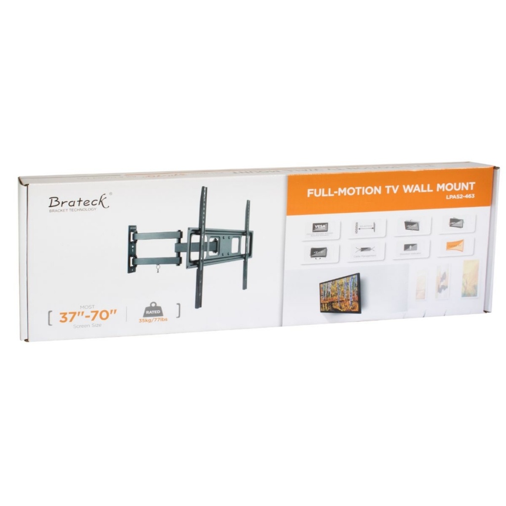 Ajuste de ángulo y posición: El Soporte Brateck LPA52-463 permite un ajuste flexible del ángulo de visión. Puede inclinar su televisor hacia arriba o hacia abajo para obtener el ángulo de visión óptimo. Además, su diseño de brazo articulado permite extender el televisor desde la pared y girarlo horizontalmente hasta 180 grados, brindando una visualización cómoda desde cualquier lugar de la habitación.