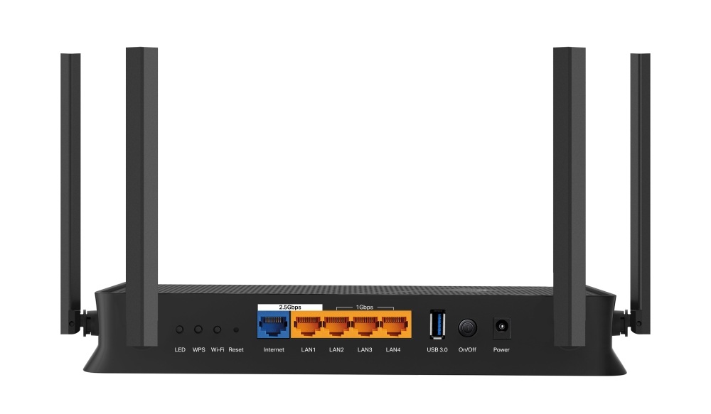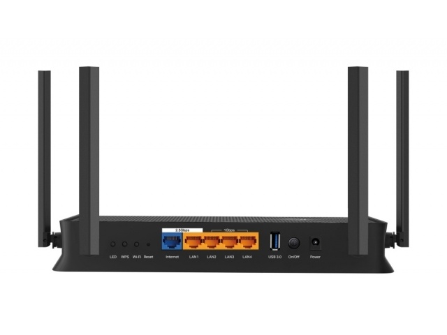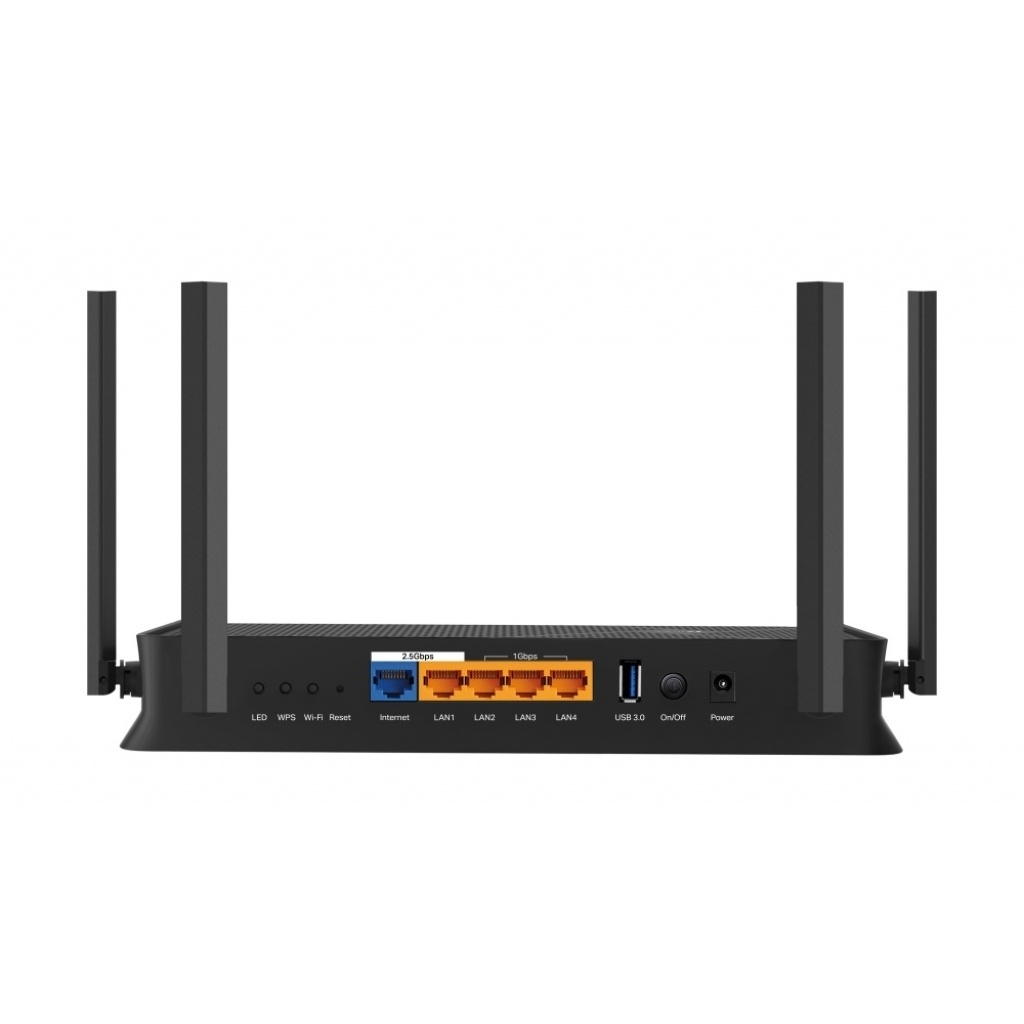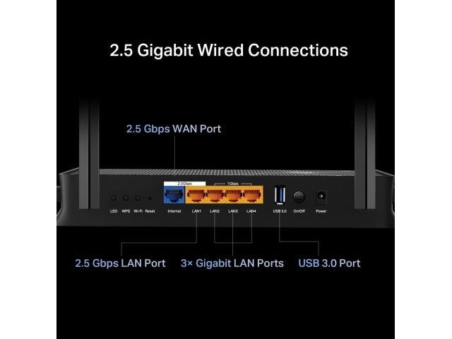 2× Puertos de 2.5G: 1× puerto WAN de 2.5 Gbps, 1× puerto LAN de 2.5 Gbps y 3× puertos LAN de 1 Gbps ofrecen transmisiones de datos a alta velocidad