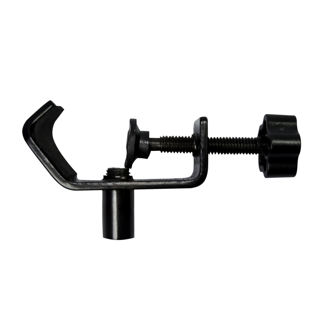 La abrazadera ajustable se fija de forma segura a cualquier soporte de micrófono