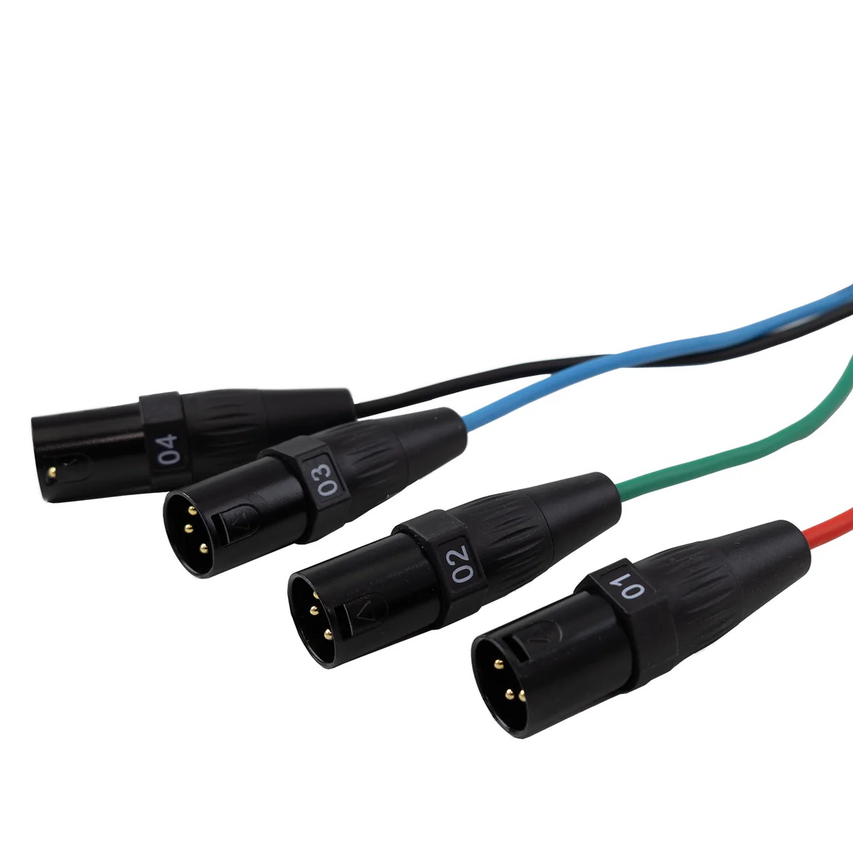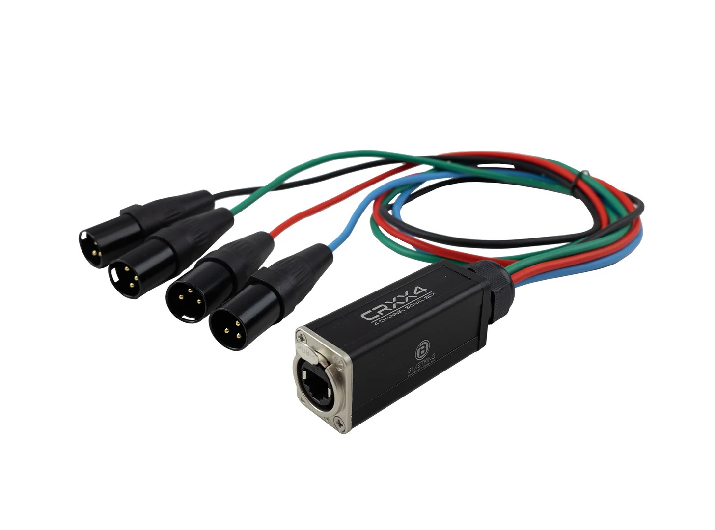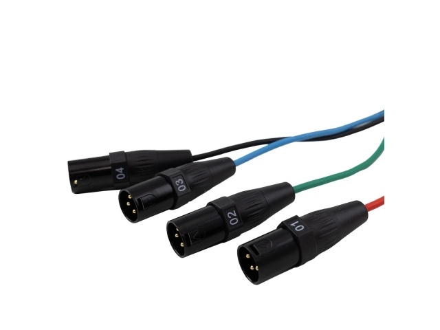 Receptor XLR macho de 4 canales a CAT6 con cables codificados por color y números de 30 pulgadas