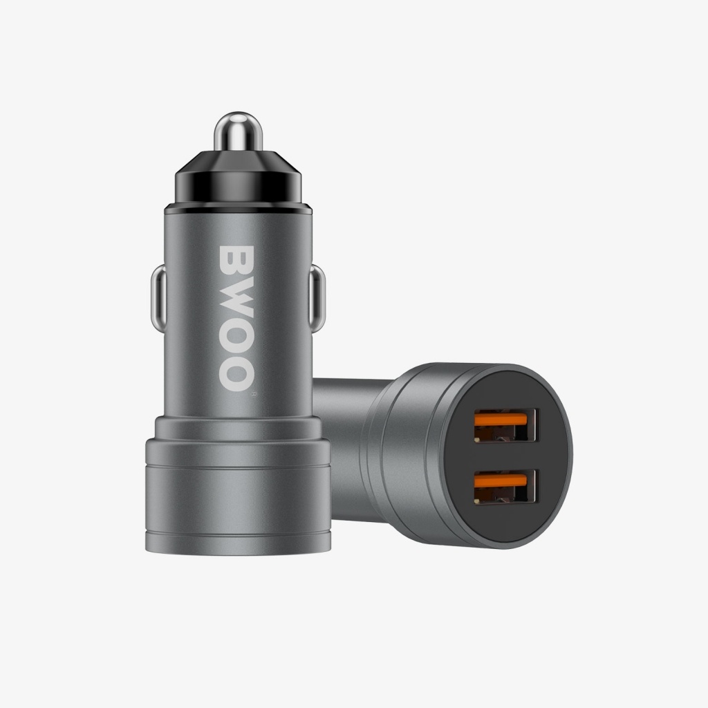 1. Cargador de coche USB dual de 12 W, carga rápida simultánea de dos dispositivos