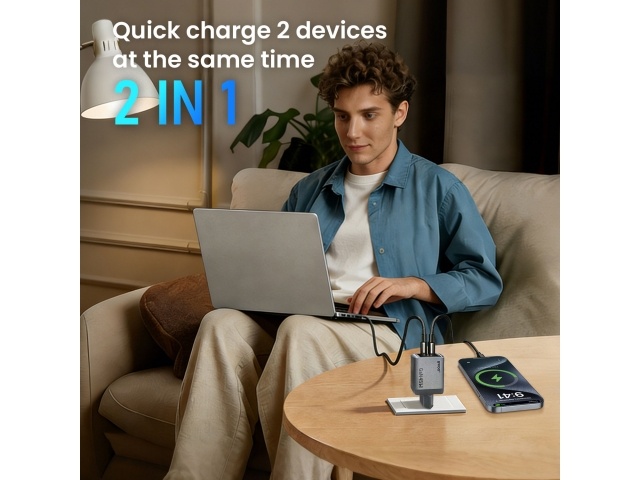 Tecnología GaN avanzada: Mayor eficiencia con menor generación de calor en un tamaño compacto.