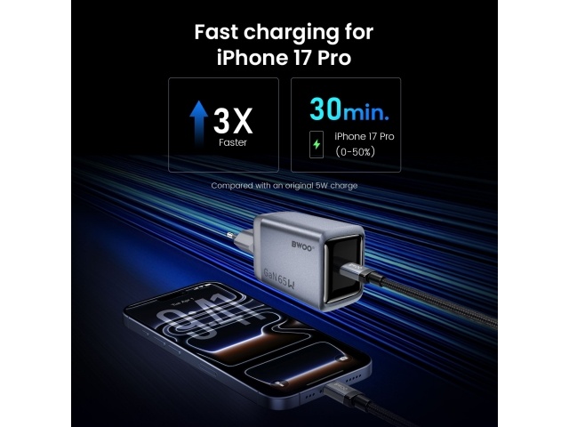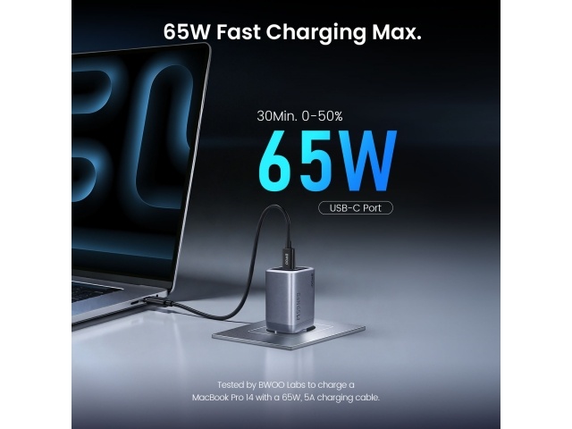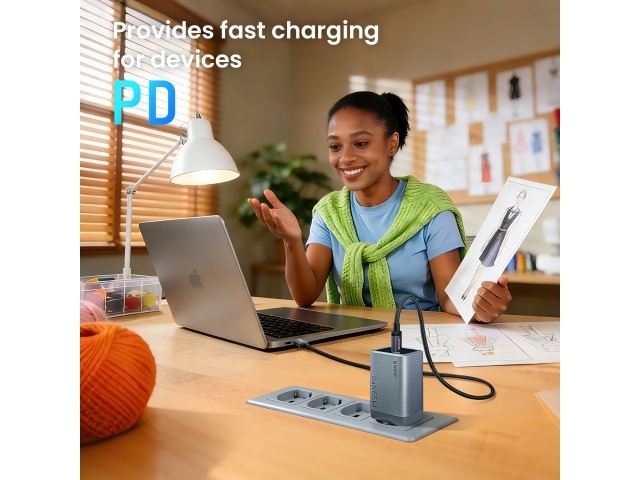 Carga rápida PD de 65 W: Energía de alta velocidad para teléfonos, tabletas y portátiles con USB-C.