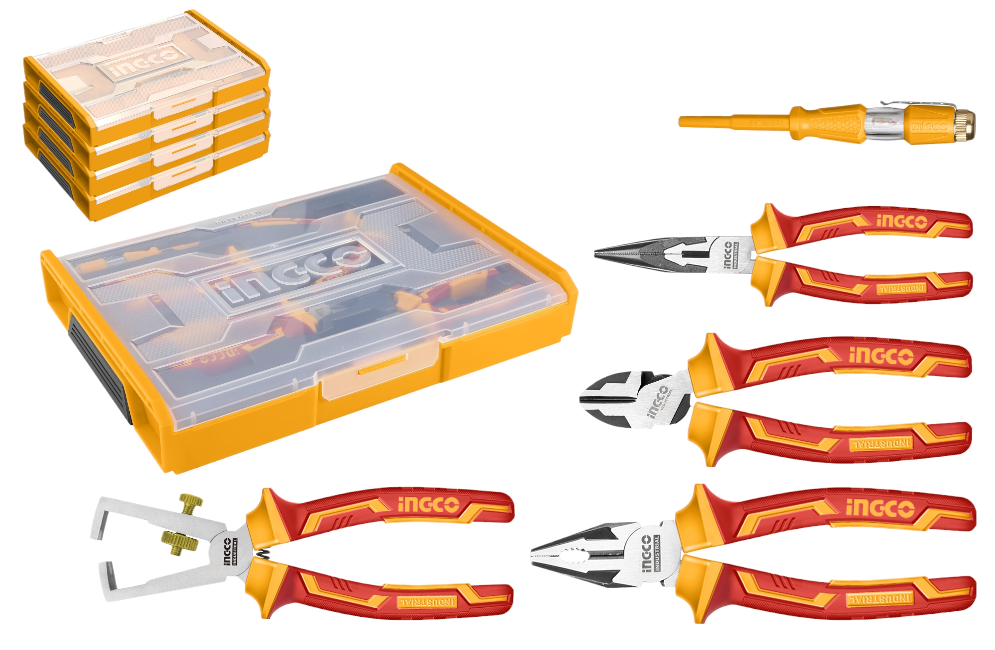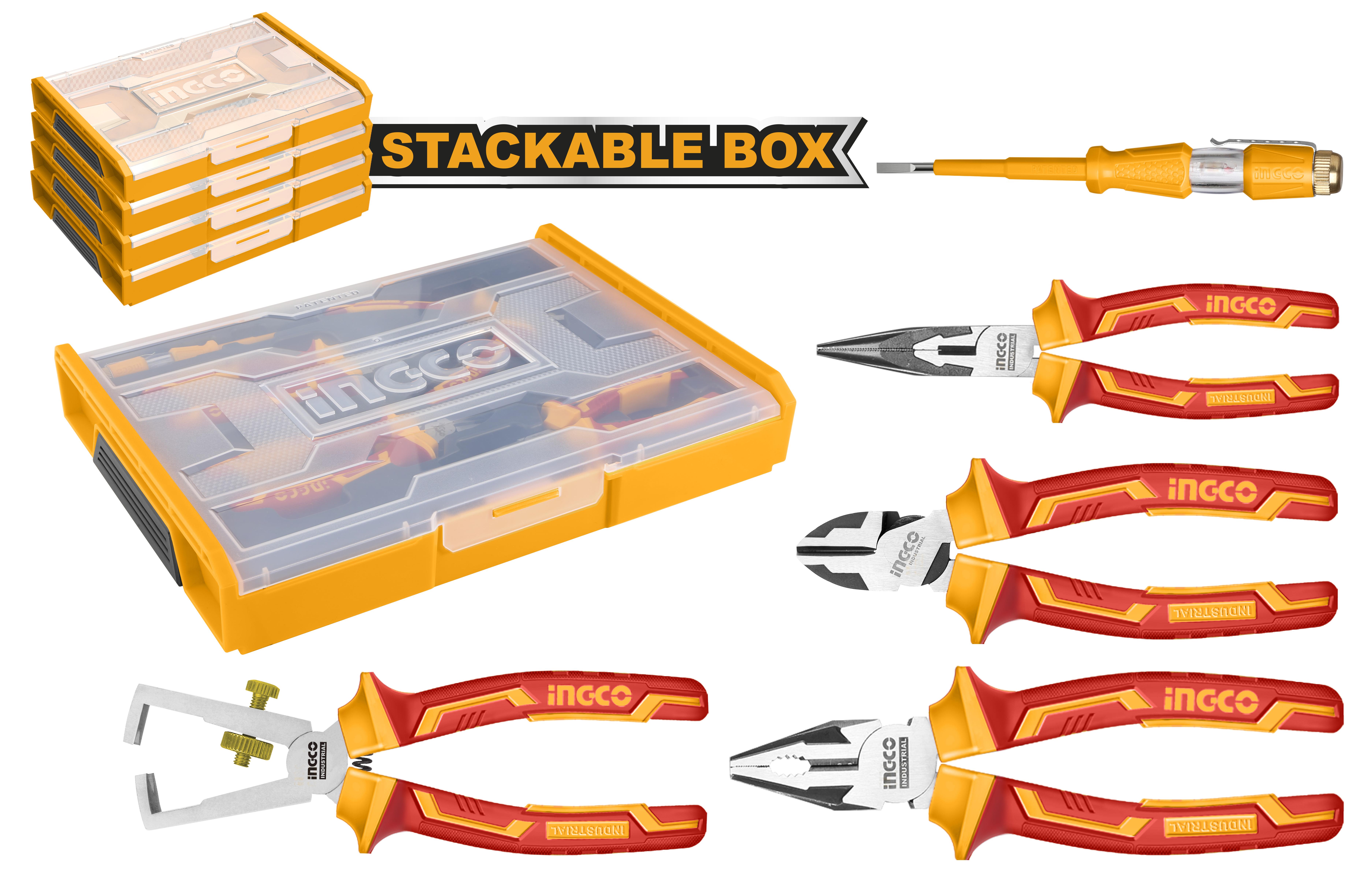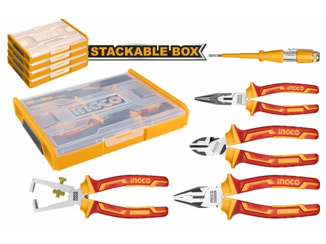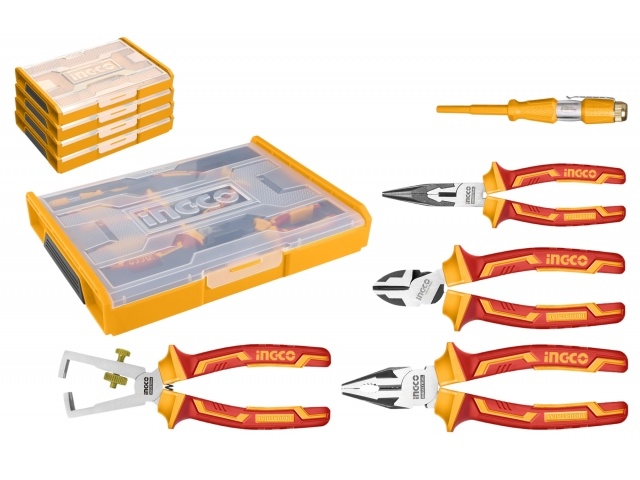 Set Organizador + 5 Herramientas Aisladas para Electricista INGCO