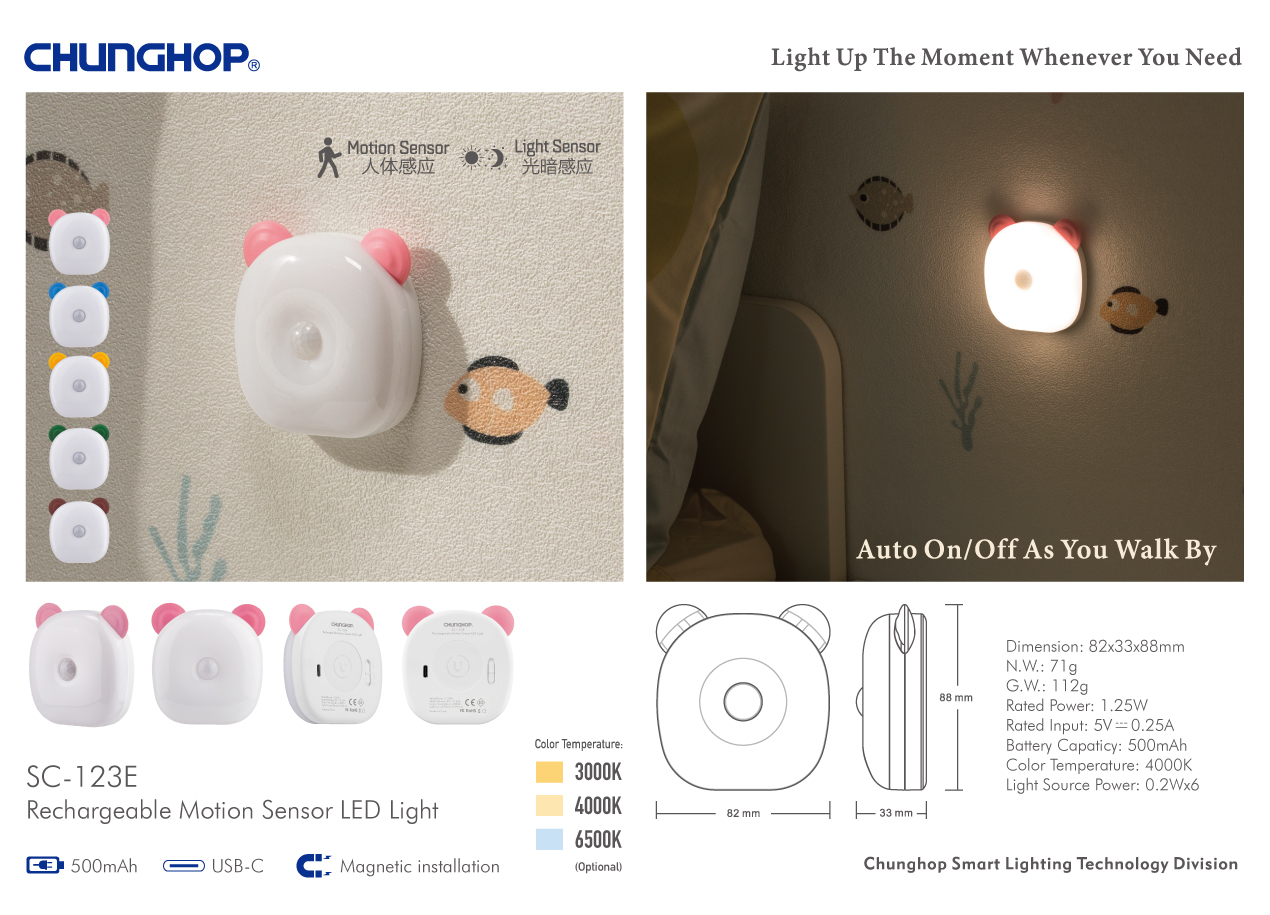 La luz se enciende automáticamente cuando la luz ambiental es baja y el sensor de movimiento detecta el movimiento del cuerpo dentro del área de detección de movimiento.