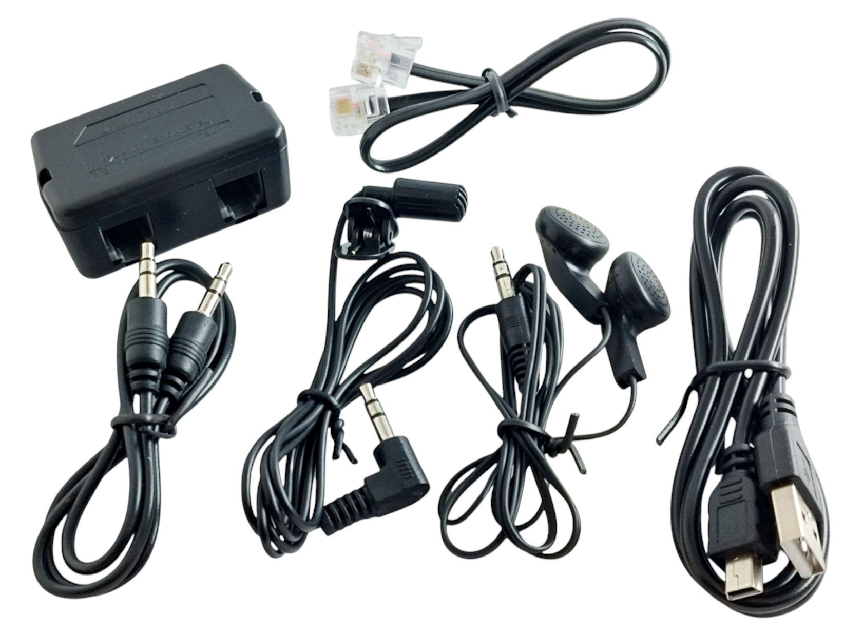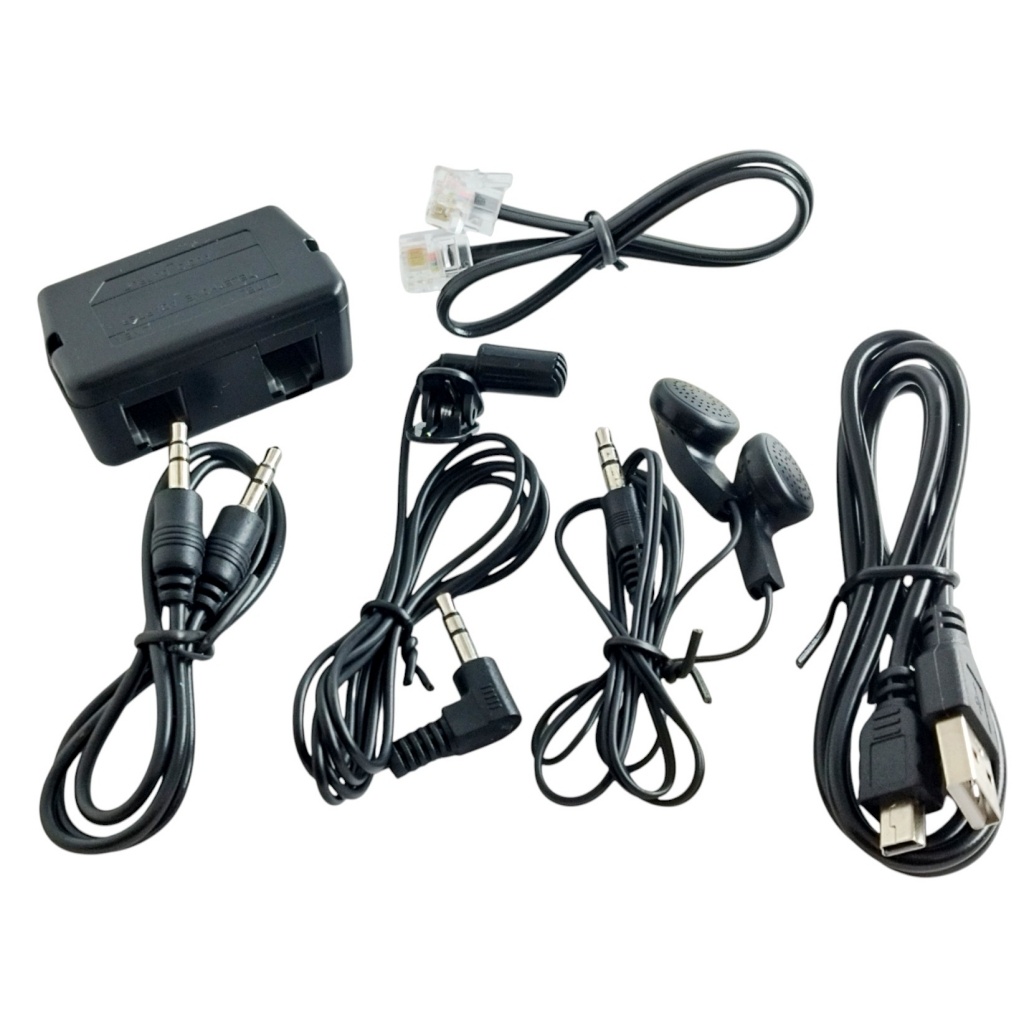 Incluye: auricular, microfono, cable auxiliar 3.5mm, cable de datos, adaptador para linea telefónica y cable telefónico