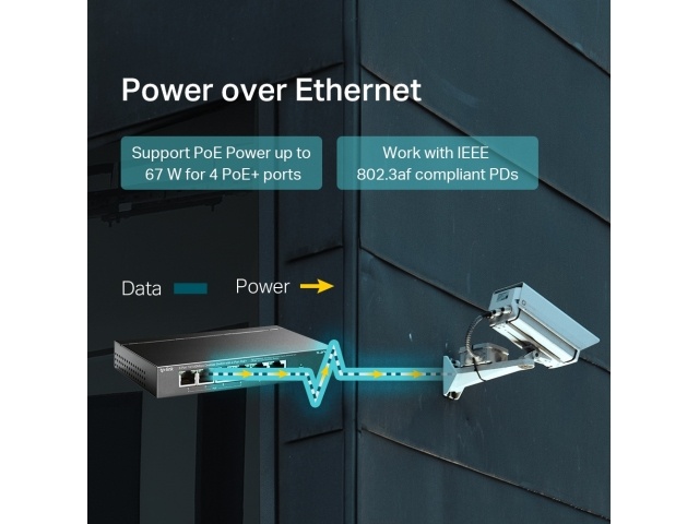 4 puertos PoE + transfieren datos y alimentan cables individuales