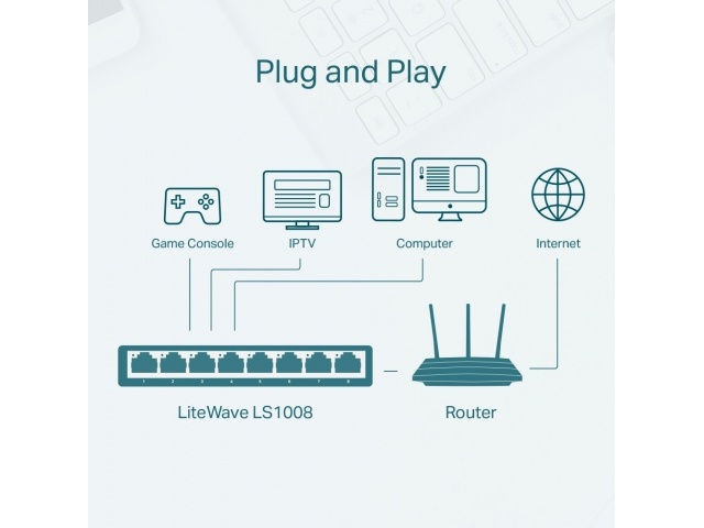 8 × 10/100mbps Puertos RJ45 con detección automática de velocidad, soporte para MDI/MDIX automático