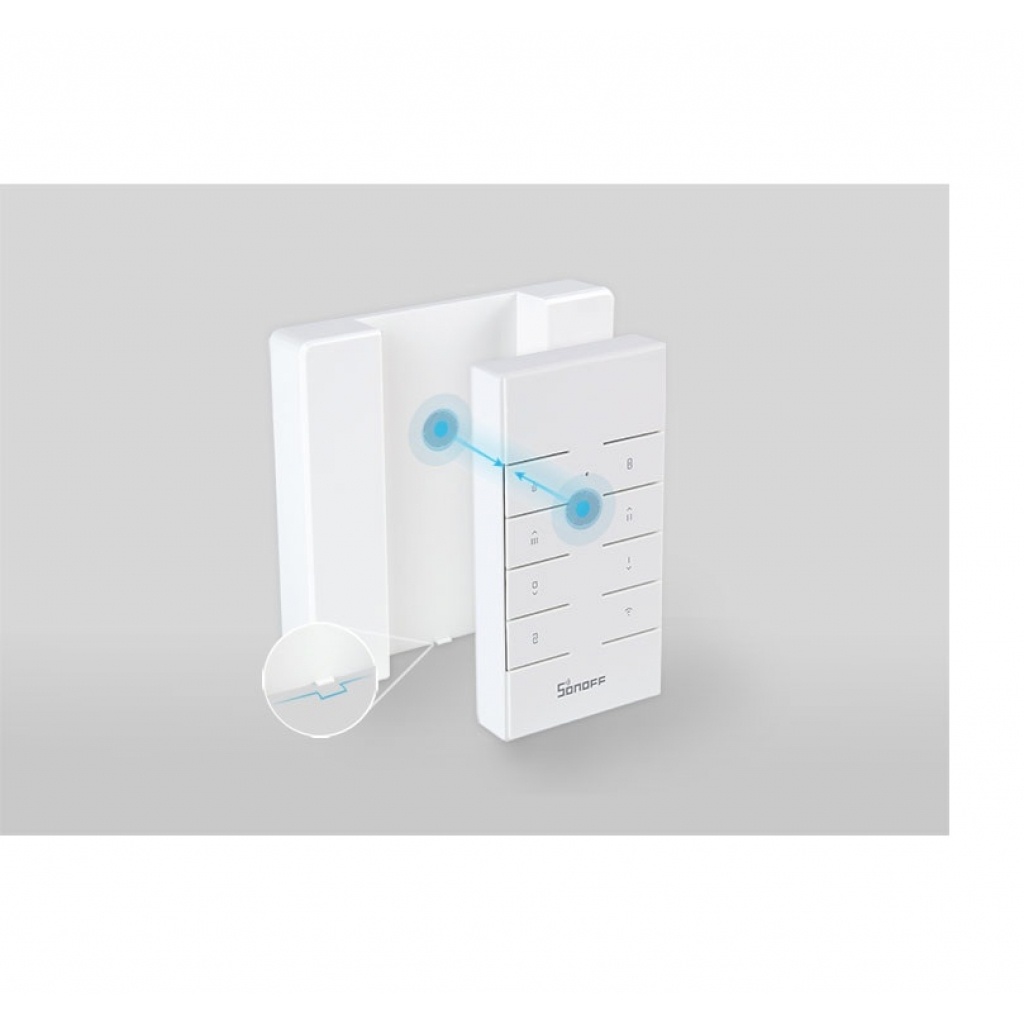 La base para el control RM 433, esta diseñada para fijar el control a la pared manteniendose en ella por su fijación magenitca, viene con los tornillos o adhesivos 3M para su instalación, cuando el control se encuentra en la base queda con un diseño elegante y cuando quieras puedes retirarlo usarlo donde quieras.